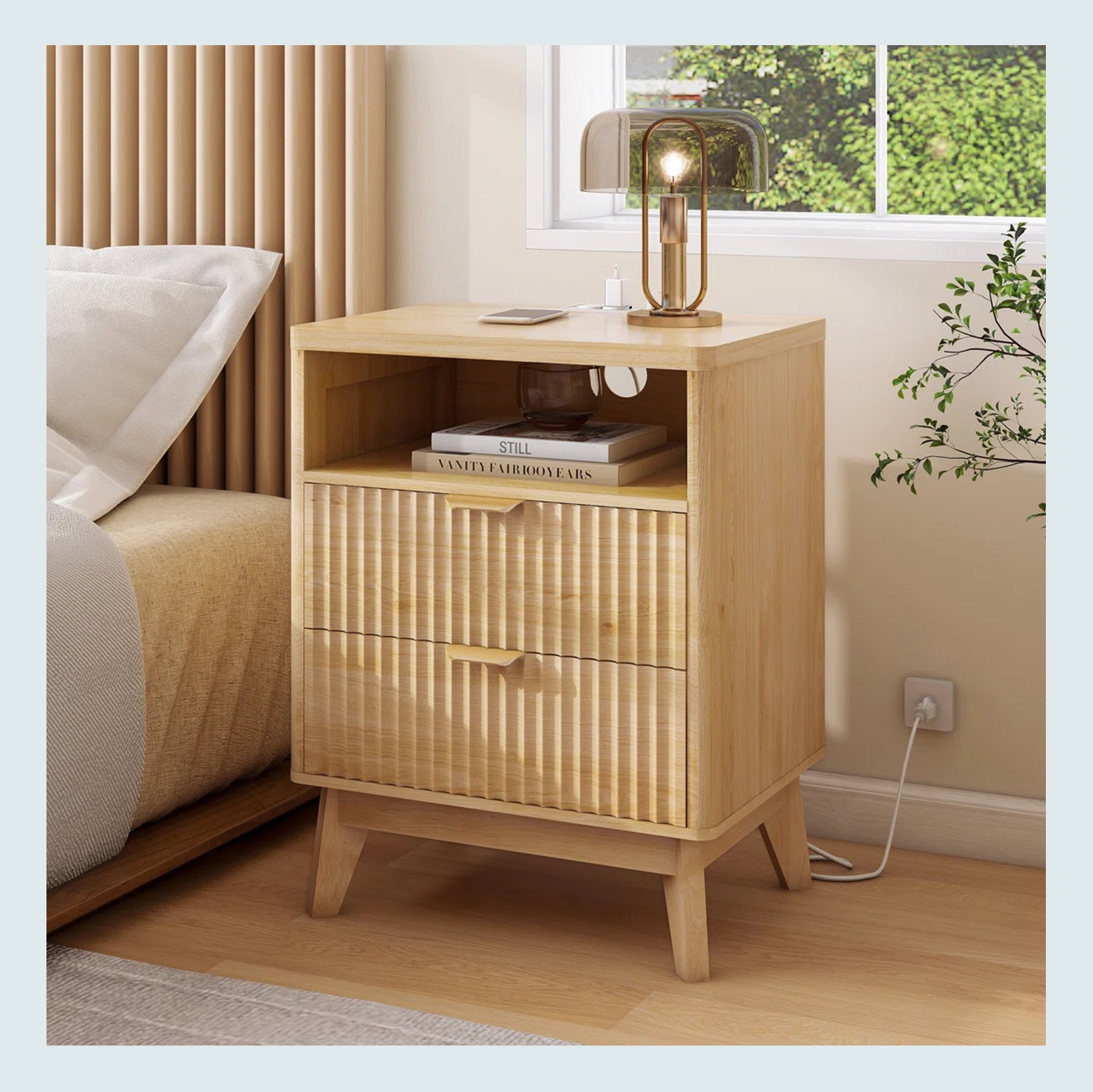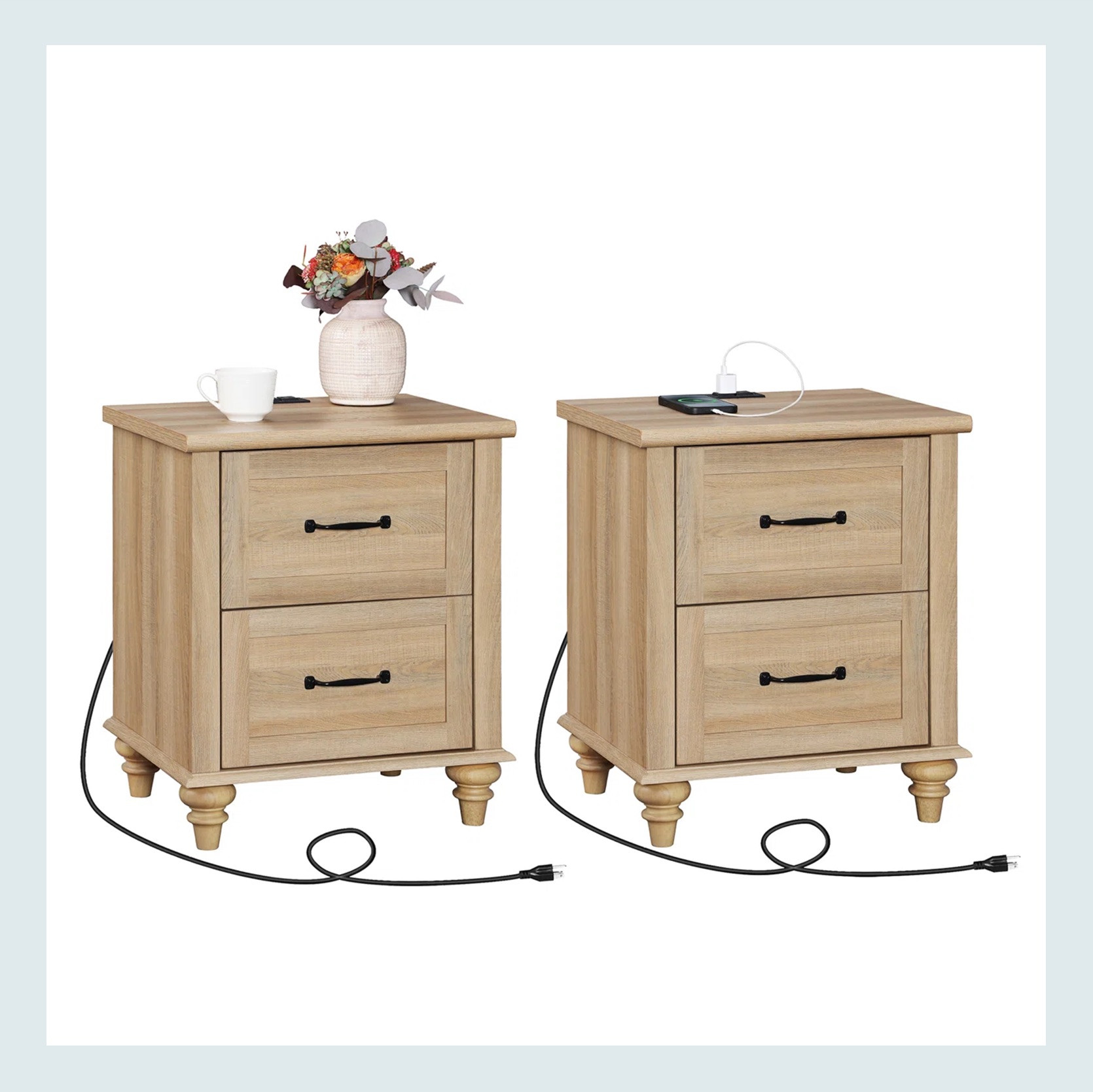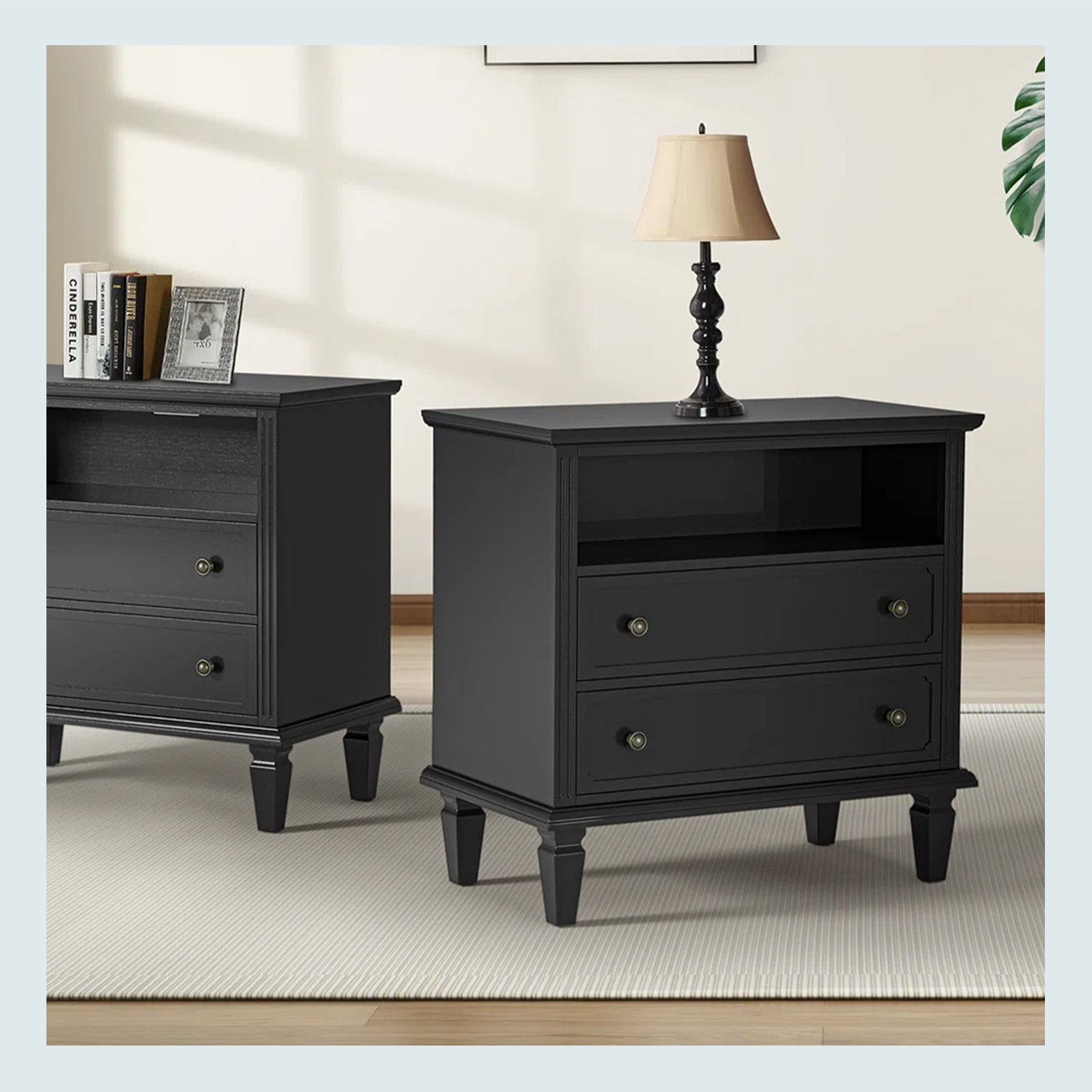 Why not have your nightstands work even better for you and have a built-in charging station? If you are someone who leaves their phone in another room while you sleep, you are my hero. But for the rest of us, the idea of having the easiest access to a charging port for one of our many devices sounds pretty amazing. But basic and overly modern nightstands are not really our preference. Instead, look at how great these modern traditional ones are. The black ones have cleaner lines and that cute open nook over their two drawers, while the light toned ones have those wonderful rounded feet. No losing with either of these options.