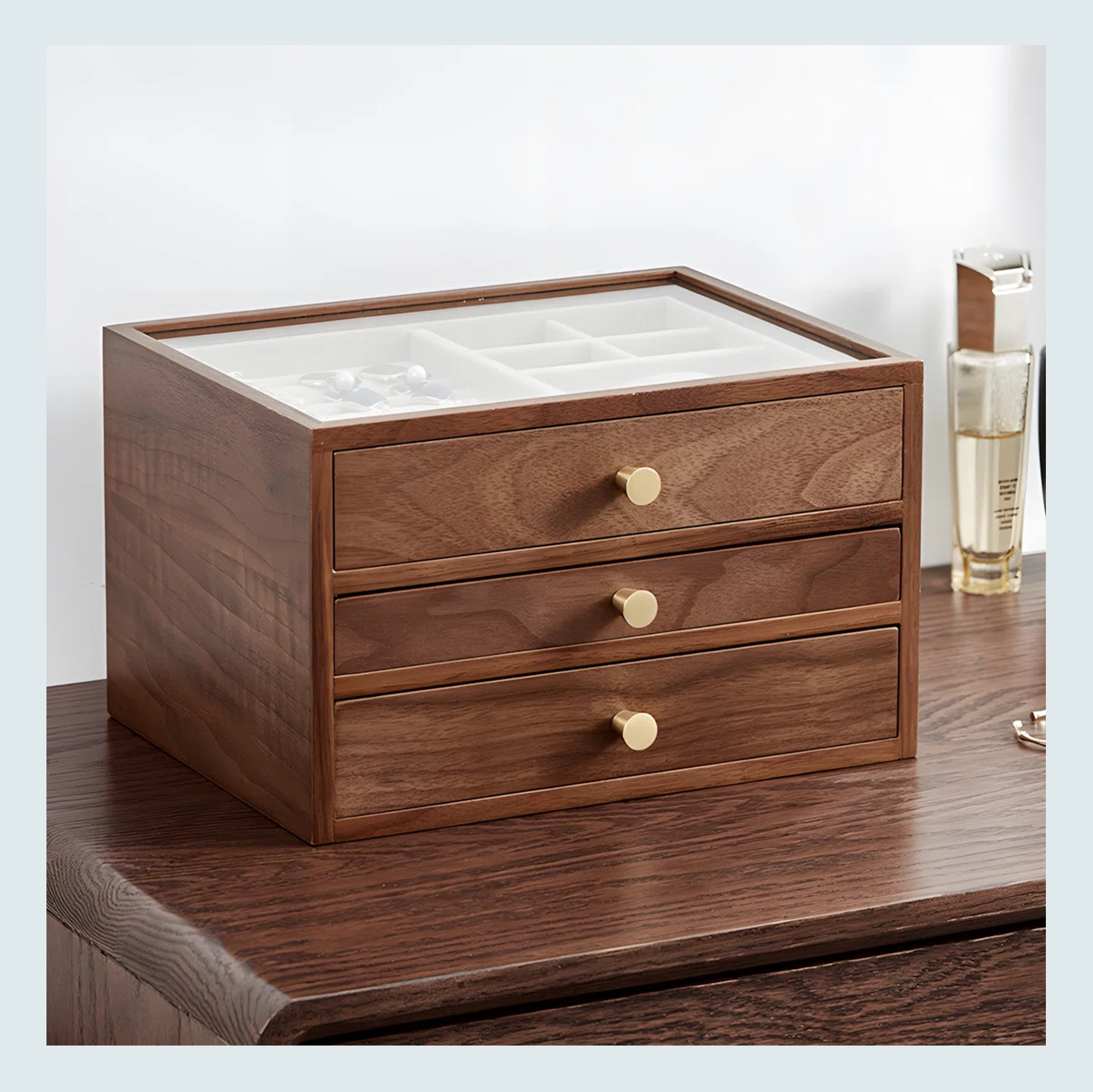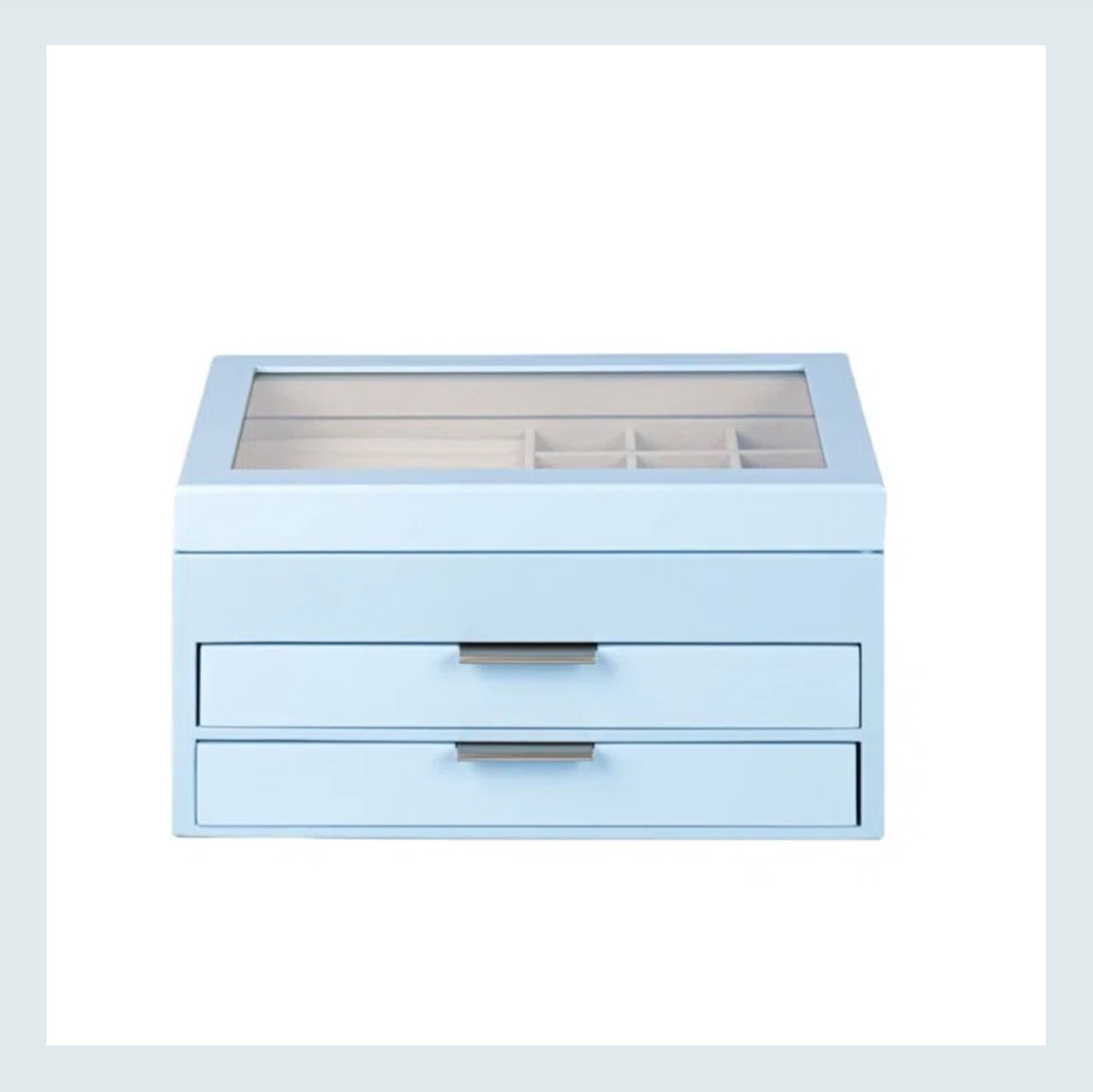 Let’s just say most of my costume jewelry is in a very pretty pink Intentionally Blank shoe box. Not a terrible solution, but it’s not a great one or one I want to display. These two, on the other hand, are a different story. If you read any trend posts from last year or Arlyn’s 2026 color trend post from Wednesday, then you know light blue is one of THE colors currently. It took me by surprise last year, too, and I couldn’t love it more. So if you want to dip your toe into the icy blue world, this light blue jewelry box is perfect. But you are more of a classic natural wood tone person and have the budget to go a little over $100, this walnut beauty is a no-brainer. If I were further along in my bathroom design, I would be having a VERY hard time choosing between these two.
