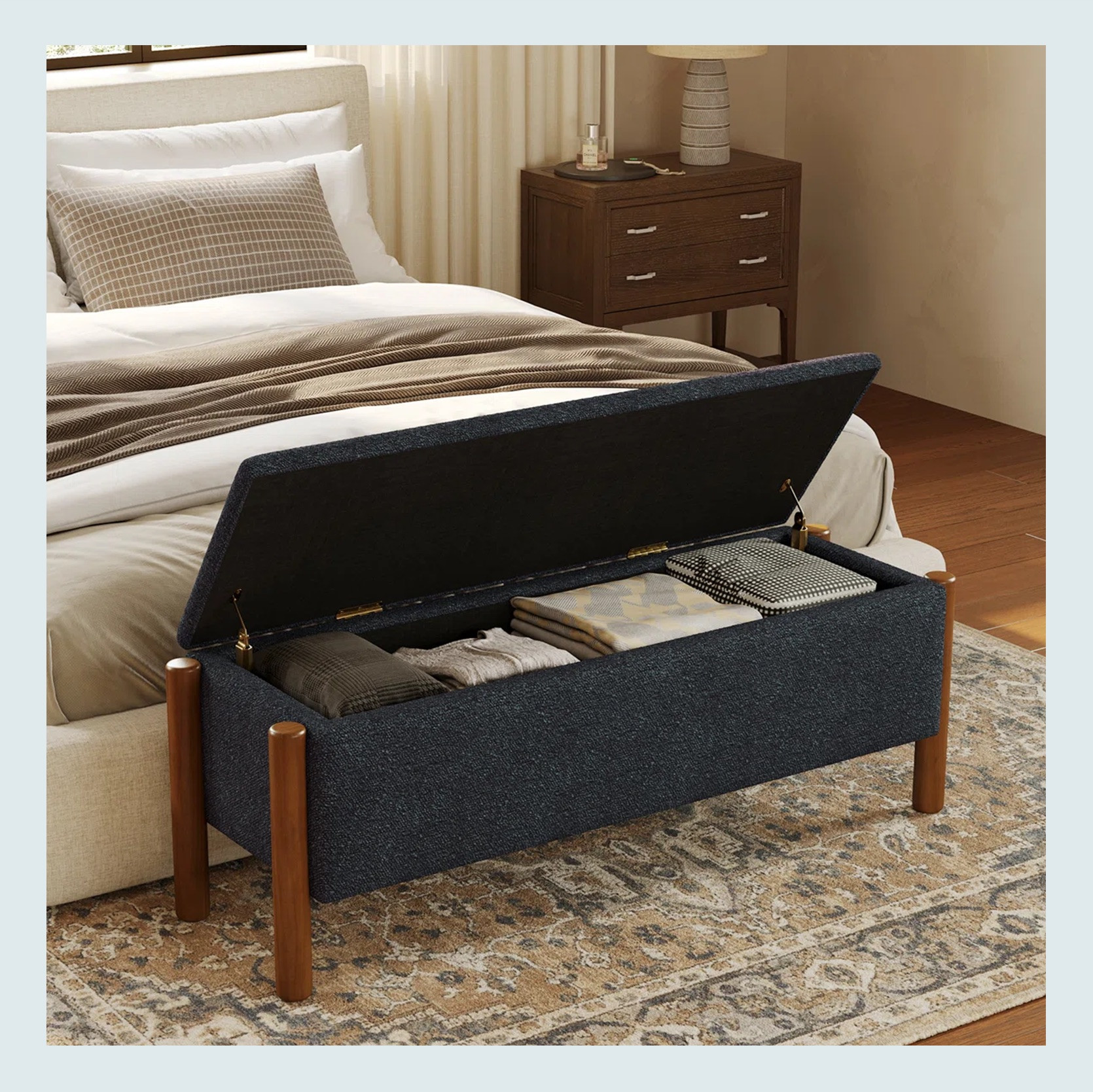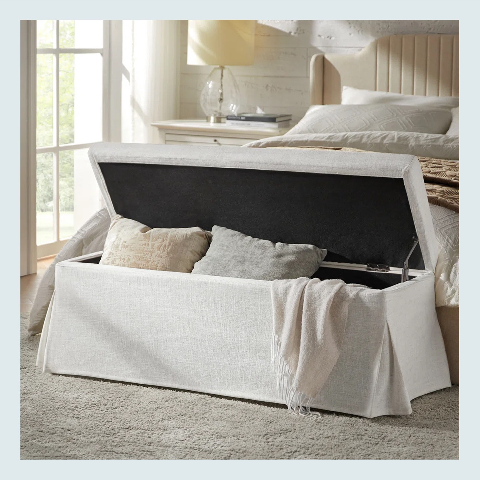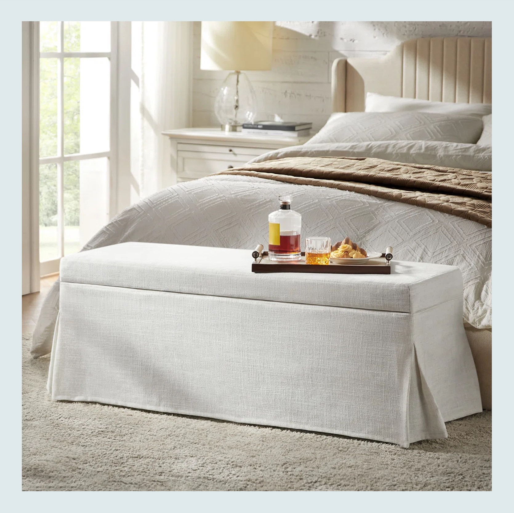 As I am sure many of you know, EHD LOVES an end-of-bed bench. Make it a storage bench?? Chef’s kiss. So when I saw this one I knew I had to include it. So pretty, elegant, AND practical.