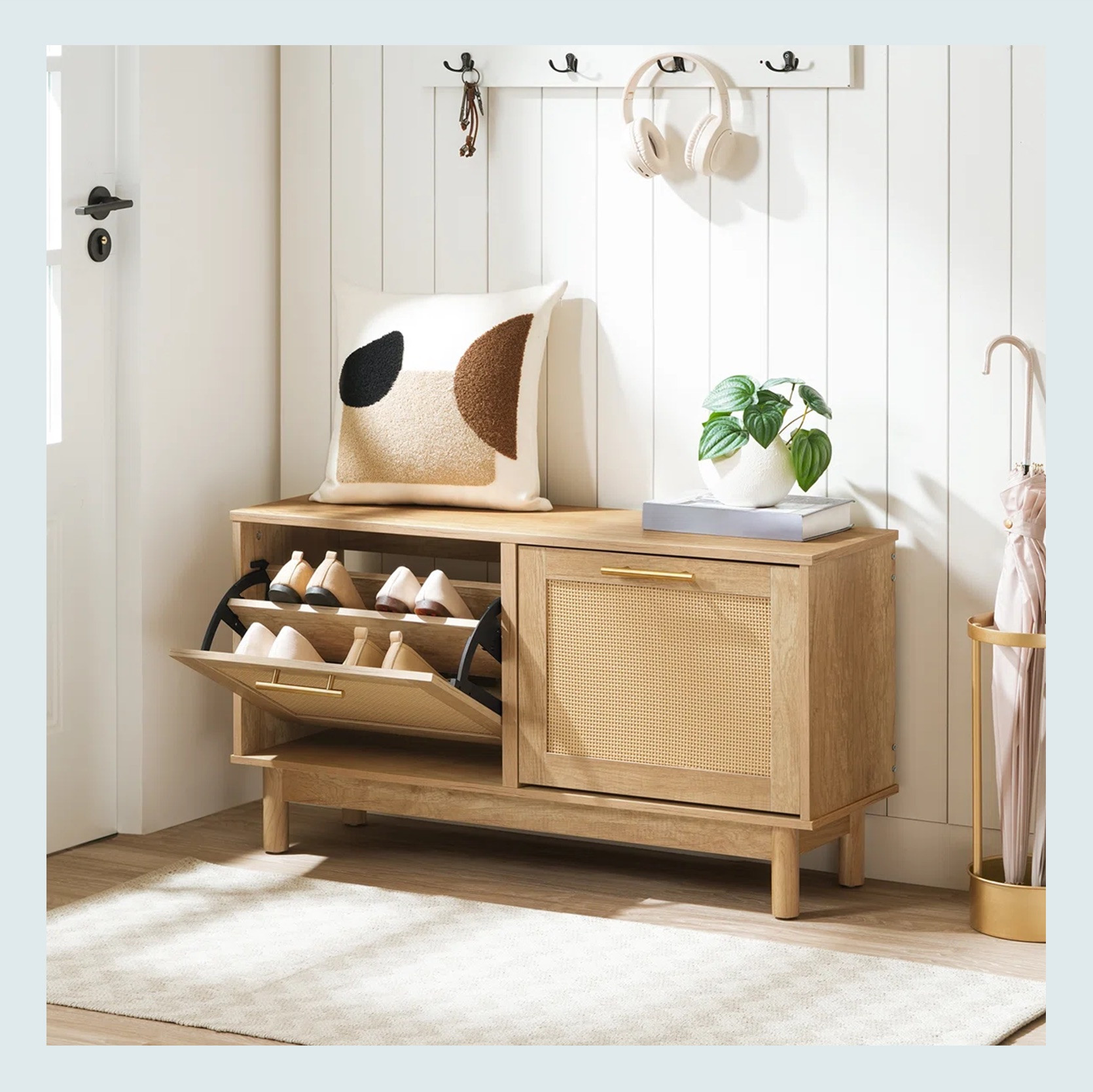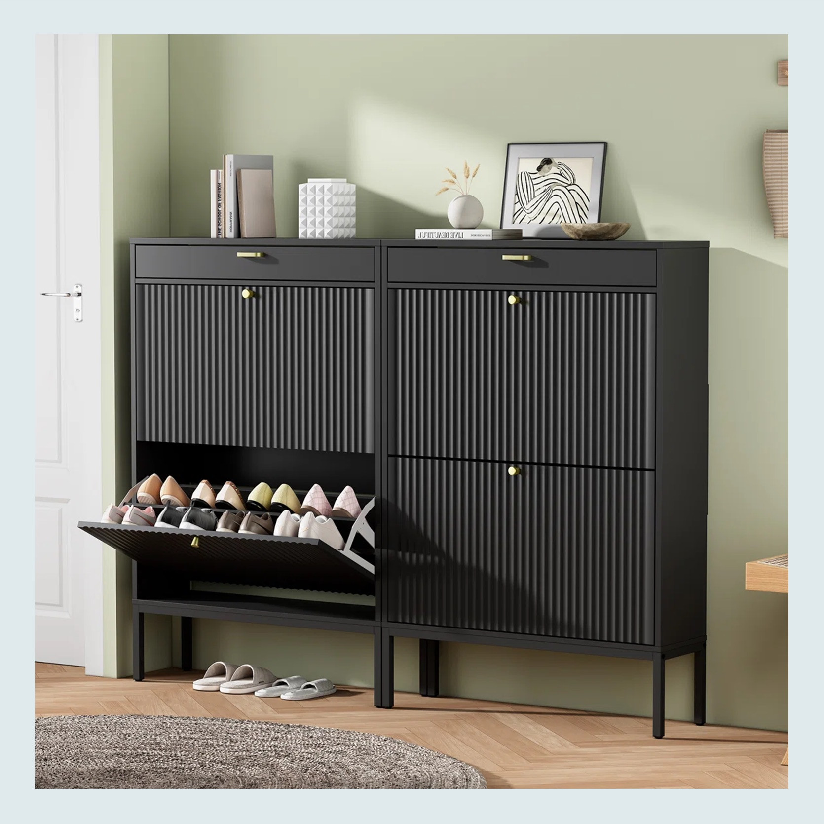 Do you have recommendations to look for narrow-width shoe cabinets? I have a nook next to my front door that could fit something 22″x12″ or less than that, but everything I find is at least 24″. Also open to other non-traditional ideas – I just need something to get the shoe clutter out of my living room.